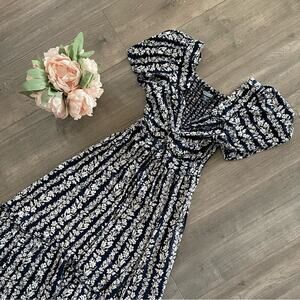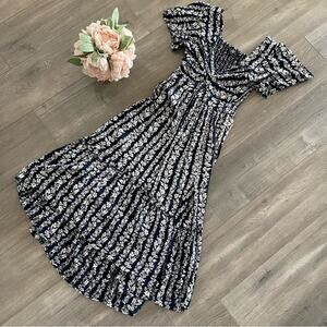 New Angie Floral Black High Low Cut Out Twist Smocked Maxi Dress