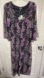Lined from top to a short mini skirt. This trendy long chiffon dress is a fuschia lavender color with black and grey abstract floral print. Flowers look similar to a daisy. 100% polyester. Size small.