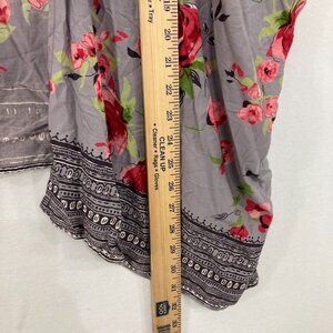 New Angie size Large Gray Red Floral Open Soft Flowy Duster Kimono Feminine