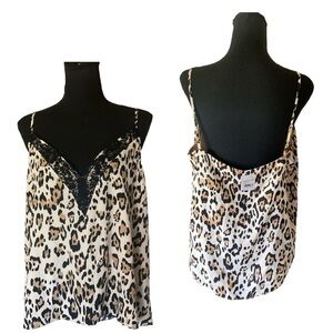 New Animal Print V-Neck Lace Trimmed Camisole Women’s Size XL Brown Black NWT