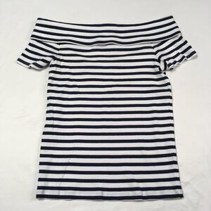 New Ann Taylor LOFT Size XL Blue and White Striped Off The Shoulder Top