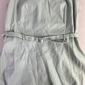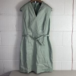 New Ann Taylor Petite Belted Sheath Dress Cross Weave Sz 6P Sage #587572 v-neck