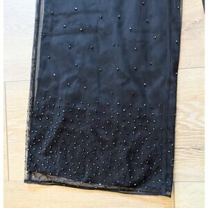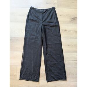 New Ann Taylor Silk Pants Size 2 Wide Leg Black Bugle Bead Sheer Lined Dressy