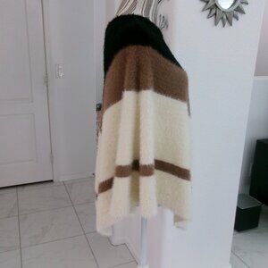 New Ann Taylor Soft Fuzzy Cream Brown Black Poncho Cream Brown Black XS / S NWT