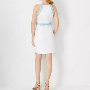 New Ann Taylor Sz0 White Blue Embroidered Sleeveless Coastal Halter Shift Dress
