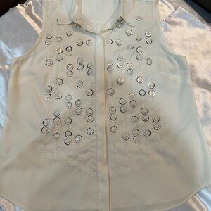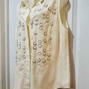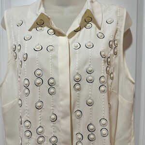 New Ann Taylor White Blouse w/Gem Stone Detail, Sleeveless, Size 12 (NWOT)