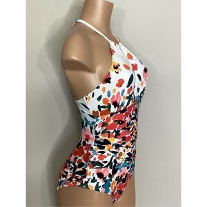 New. Anne Cole floral swimsuit. Beautiful high neck swimsuit keyhole opening in front. Ruched on sides. Soft removable pads. Removable ruffle straps in back.