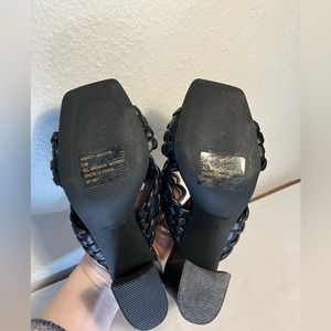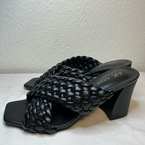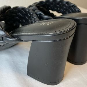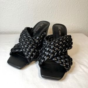 New Anne Klein Black Misty Woven Criss Cross Straps Sandals block heel chunky