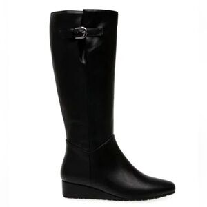 New Anne Klein Flex Mollie Knee High Boots Low Wedge Black Sz 6.5