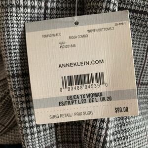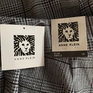 Brand new Anne Klein slim ankle pants in women's size 1X. Elastic waist. Black, white and brown plaid pattern. Stretchy 95% polyester 5% elastane. Machine washable. New with tags!