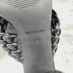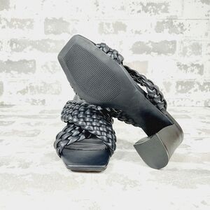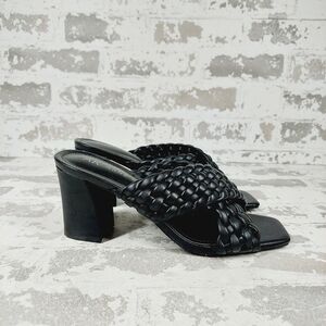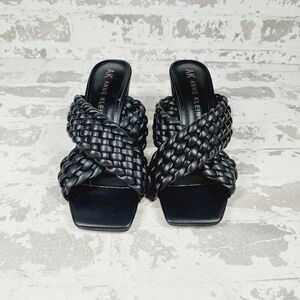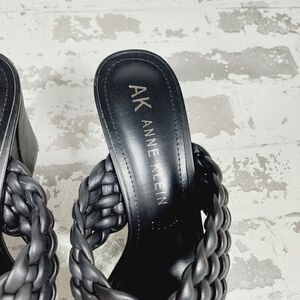 New Anne Klein Woven Straps Block Heel Black Mule Slide Sandals K149