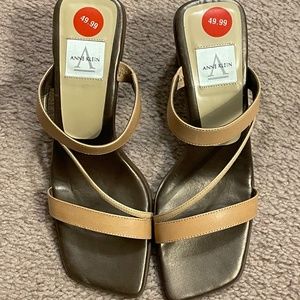 Anne Klein tan size 7.5 sandals Leather strap, 3” heel (wide block) New (never worn)