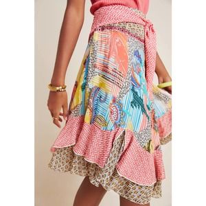 New Anthro Camella Tie-Front Ruffled Midi Skirt
