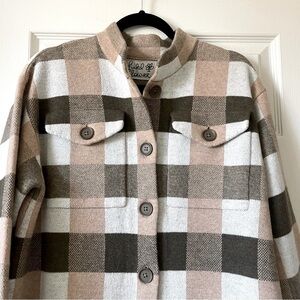 New with tags Anthropologie Field Flower wool jacket/shacket, plaid pattern, button-up jacket, relaxed fit, soft fabric, comfy and cozy, patch pockets at chest, buttoned cuffs. Excellent condition, new with tags.