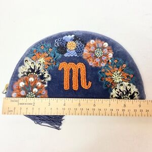 New Anthropologie Anna Harlow Russo Monogram Crescent Pouch Clutch Letter "M"