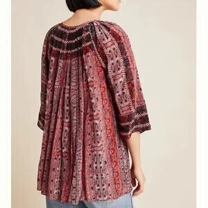 New Anthropologie BHANUNI By JYOTI Aleska Crocus Rouge Motif Tunic Blouse Top