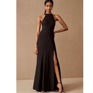 New Anthropologie BHLDN Lennox Halter Open-Back Side-Slit Stretch Crepe Gown 4