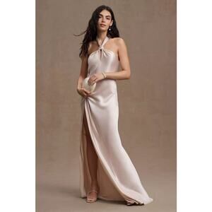 New Anthropologie BHLDN Ronny Kobo Samra Satin Twist-Halter Column Gown SIZE 4