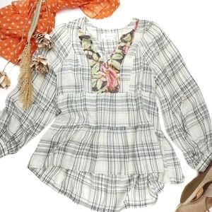 New Anthropologie Boho Gold Lined Iridescent Floral Plaid Wool Blend Top…