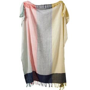 Add a pop of color to your bedroom with this beautiful Anthropologie Brushed Colorblock Throw Blanket. The rectangular blanket measures 50 x 70 inches and is made of soft cotton material that is perfect for snuggling up on chilly nights. The bohemian style blanket features a unique brush pattern and a multicolor design that will complement any decor.