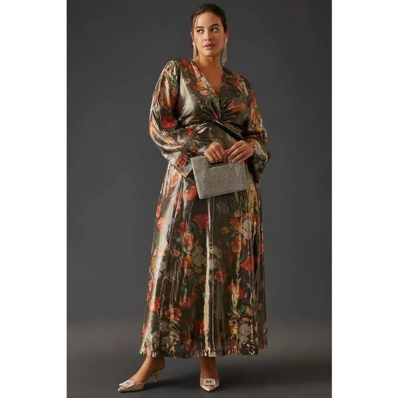 New Anthropologie Caballero Deep V-Neck Maxi Dress
