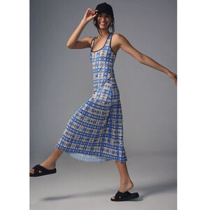 New Anthropologie Dhruv Kapoor Plaid Mesh Midi Dress $210 Blue X-Large Petite