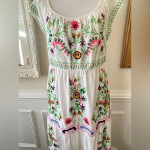 New Anthropologie Embroidered Off-The-Shoulder Maxi Dress Medium White