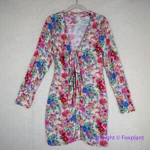 A spread collar and floppy tie at the V-neckline add charm to this long-sleeve mini brought to life by a vibrant floral print.