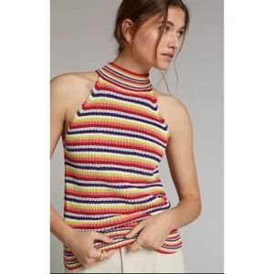 New Anthropologie John + Jenn Rainbow Knit Halter Percy Sweater Tank Siz…