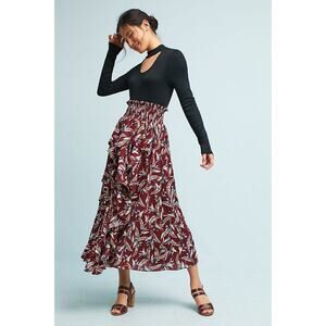 New Anthropologie Keshika Ruffled Midi Skirt Mynah's Reynu Taandon $178 SMALL