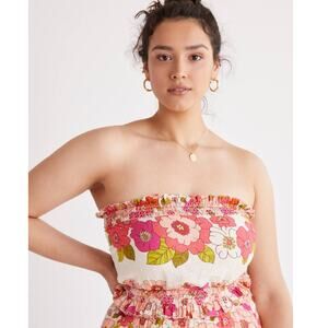 New Anthropologie LOVE THE LABEL Cornelia Smocked Floral Tube Top $98 X-SMALL
