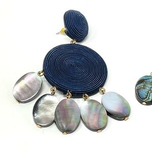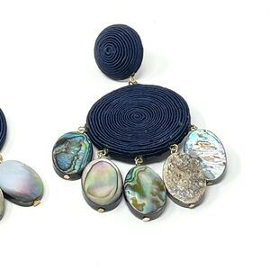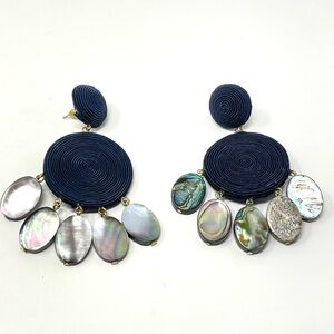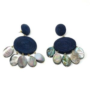 New Anthropologie Lake Life Preppy Circle Drop Earrings Blue