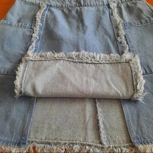 New Anthropologie Large L Umgee Light Wash Fringe Frayed Mini Denim Jean‎ Skirt