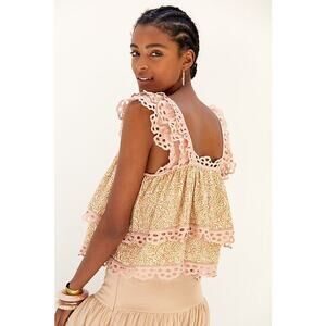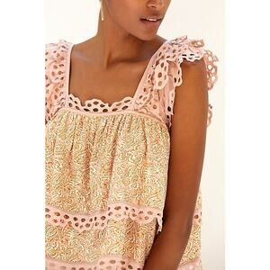 New Anthropologie Let Me Be Eyelet Tiered Swing Top $110 SMALL Neutral Motif