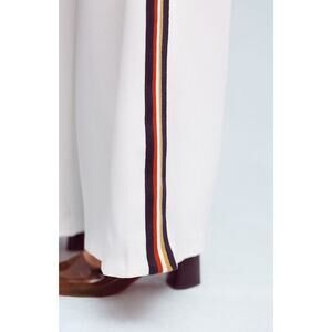 With racing stripes along both outer seams, these wide-leg trousers translate the time-tested track pant into a modern, infinitely wearable silhouette. By Line & Dot.