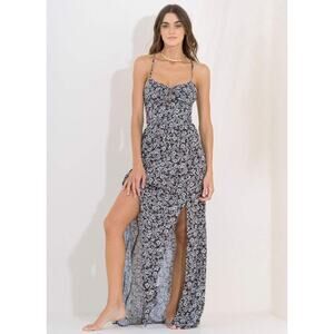 New Anthropologie MAAJI Holly Maxi Dress $138 MEDIUM Black & White Floral