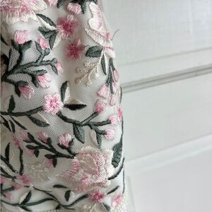 NWOT- beautiful floral beaded embroidered gown with ruffled detail and strappy design.
