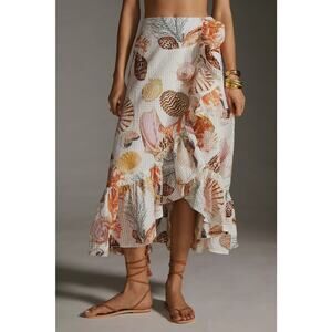 New Anthropologie Maeve A-Line Wrap Midi Skirt $170 PLUS 16W Sea Shell