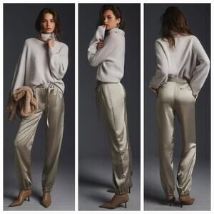 New Anthropologie Maeve Parachute Pants $148 SIZE 10 TALL Champagne Grey