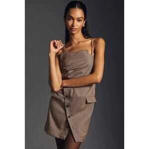 New Anthropologie Maeve Strapless Button-Front Dress $170 SIZE 6 Brown Motif