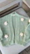 Anthropologie Maeve The “Susannah” 3D flower knit cardigan in light sage green with cream and white flower appliqués (pit to pit: 22 in, length: 23 in). Relaxed open-front fit with ribbed cuffs and hem.
