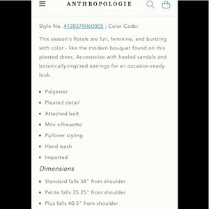 New Anthropologie Mireille Pleated Dress size S