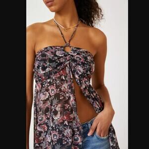 Elevate your fashion sense and make a bold statement with the breathtakingly beautiful open-front halter top by Anthropologie.