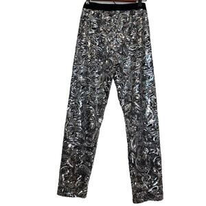 New Anthropologie Pascaline Sequined Trousers by Porridge $188 SMALL Silver/Gray