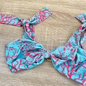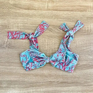 New Anthropologie PatBO Coral Tie Knot Bikini Swim Top Tank Print Blue Medium