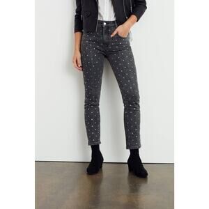 New Anthropologie Pilcro Ultra High-Rise Beaded Straight Jeans $158 SIZE 28