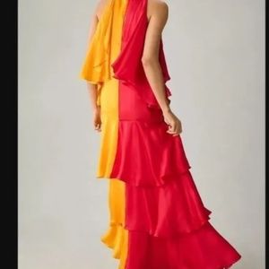 Brand new Anthropologie Pinnacle by Shruti Sancheti satin ruffle maxi dress