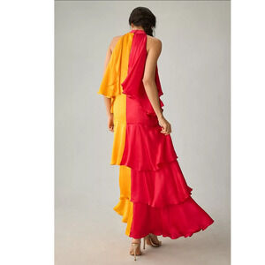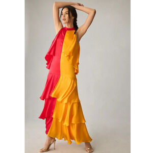 New Anthropologie Pinnacle by Shruti Sancheti Mock-Neck Colorblock Ruffle Dress