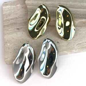 A sleek, sculpted silhouette distinguishes these high-shine SHASHI earrings, a versatile accessory for casual and polished looks alike. The wavy metal catches the light at every turn. Well made, Solid metal, yet not too heavy.