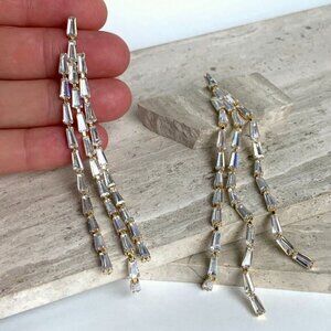 New ~ Anthropologie Shashi Cascading Baguette Crystal Fringe Gold Earrings